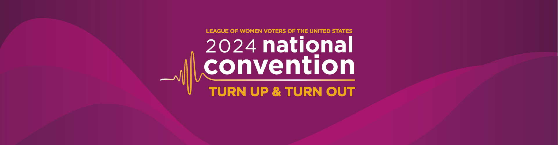 56th Biennial National Convention. Delegates will participate in the Convention Plenary and vote on the 2024–2026 Program, budget, LWVUS Board of Directors and Nominating Committee, and bylaws amendments. Other activities include Lobby Day, breakout sessions, and Saturday reception and dinner.