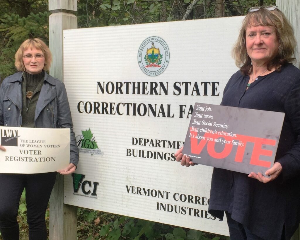 In Vermont, incarcerated citizens have the right to vote. The League has worked in partnership with the Vermont Department of Corrections to register inmates to vote and has provided correctional facilities with instructional videos and educational materials to assist inmates in their efforts to register. If you would like to learn more about this program and be called upon when voter registration drives are scheduled in the state, email Sybil Schlesinger.