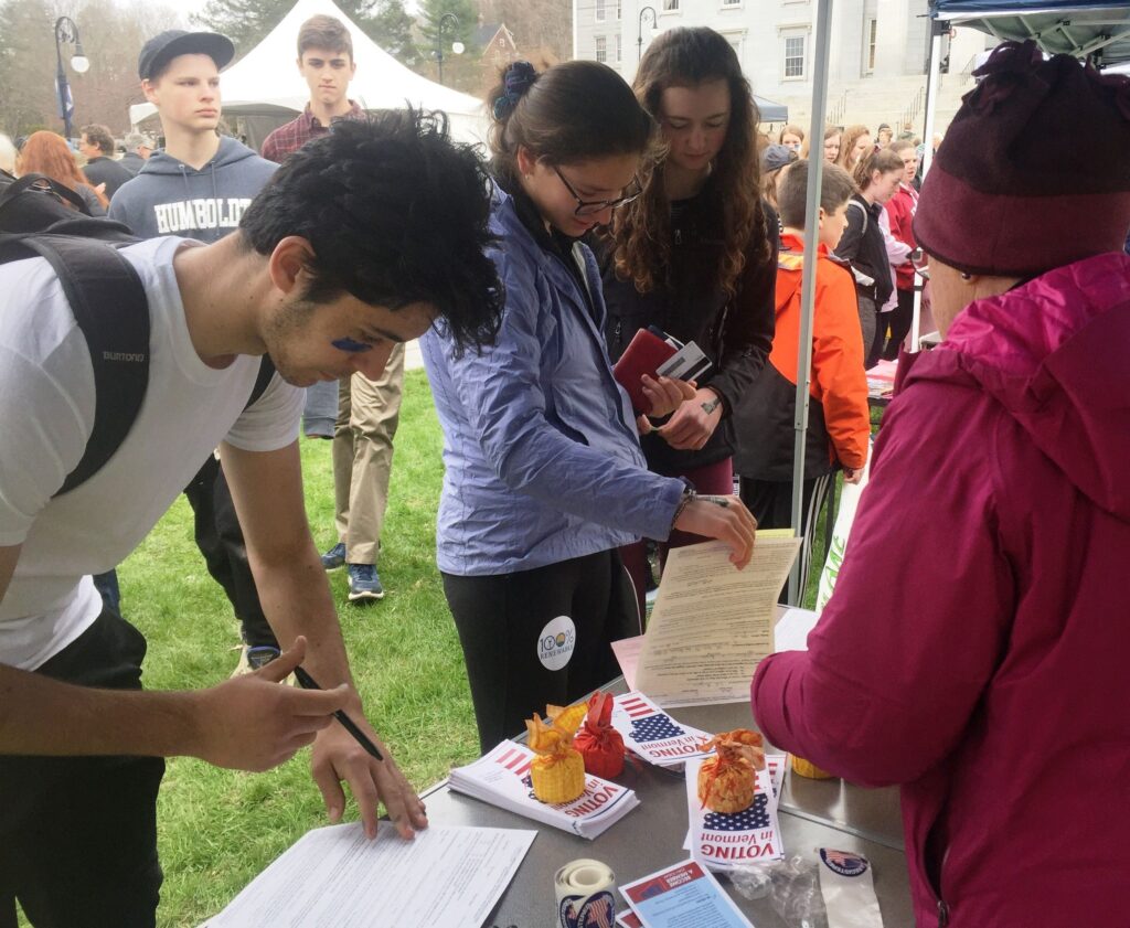 The League is committed to civic engagement and encourages citizens to participate in government by voting. We conduct voter registration drives at festivals, farmer’s markets, outside grocery stores, in malls, and any place we think we can reach voters. You can help plan and volunteer at our voter registration events, distributing nonpartisan information on voting. Training on registering voters is provided. Email league@lwvofvt.org.